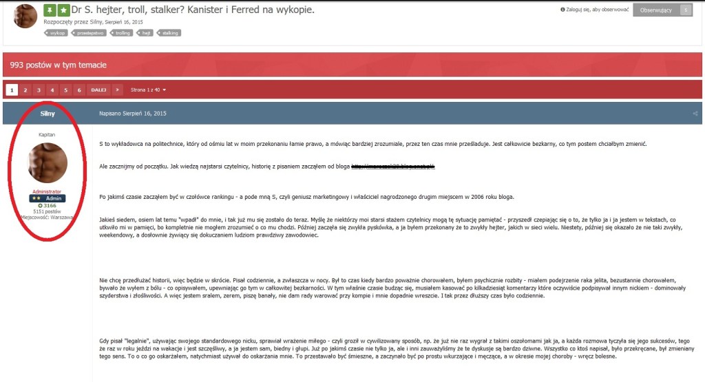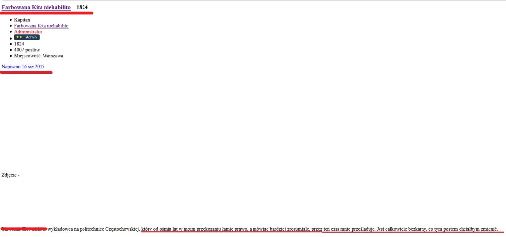 Jednocześnie zachęcam każdego do sprawdzenia, kim jest użytkownik o tak ,,hejterskiej” nazwie jak ,,Farbowana Kita niehabilito” – http://braciasamcy.pl/index.php?/profile/2-farbowana-kita-niehabilito/