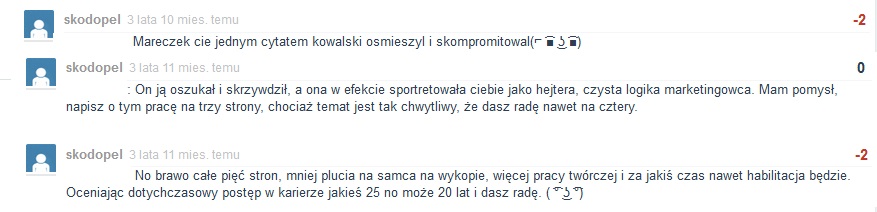 Nie wiem czy Pan Kotoński zdaje sobie z tego sprawę, ale według mnie to właśnie On w tej całej historii jest zwykłym hejterem, podłym trollem i zawistnym stalkerem, który ucieknie i posłuży się do każdej metody aby tylko wyżyć się na swoim ,,oponencie”, którego sprawy oraz osoba Pana Kotońskiego nigdy nie interesowały – tak działają właśnie metody UBeckie i konfidenckie.