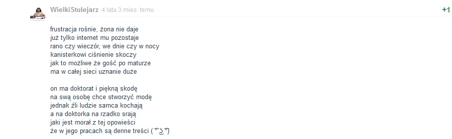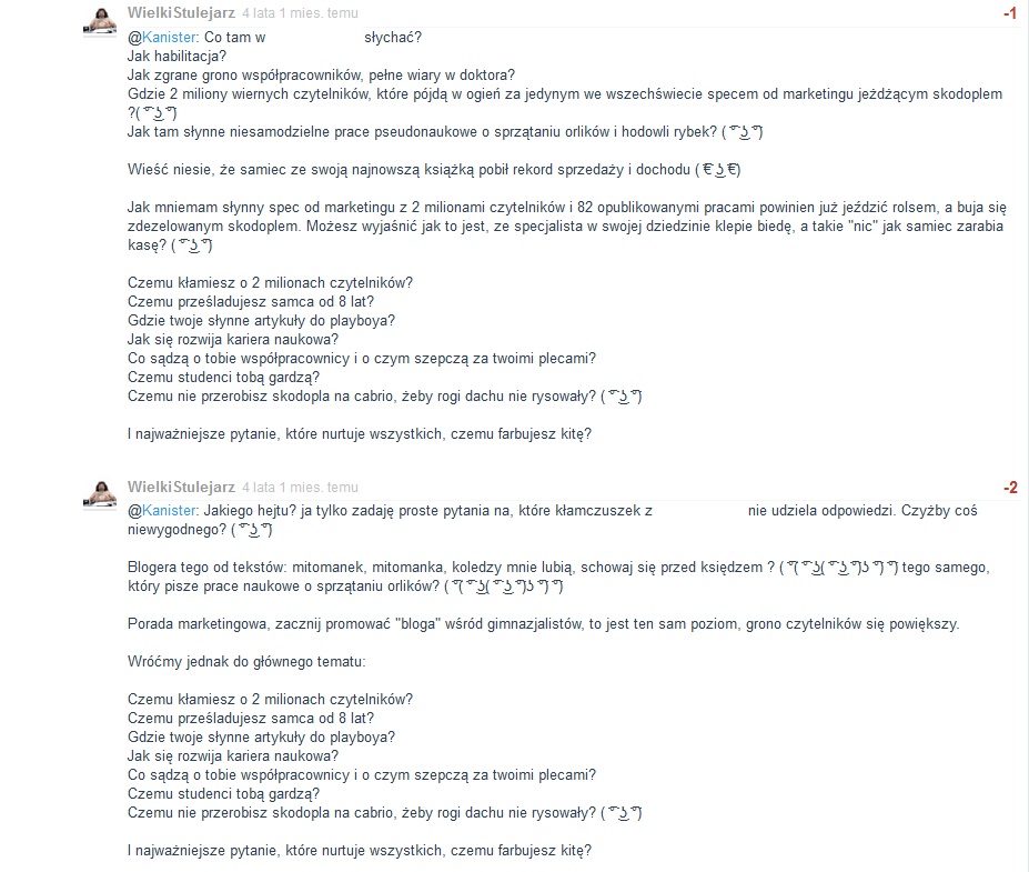 Czytając te pełne nienawiści i żywej wrogości wpisy, zastanawiam się kto miał być tym hejterem czy stalkerem?