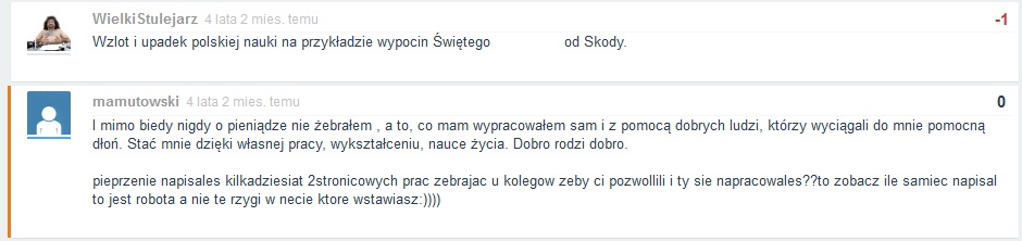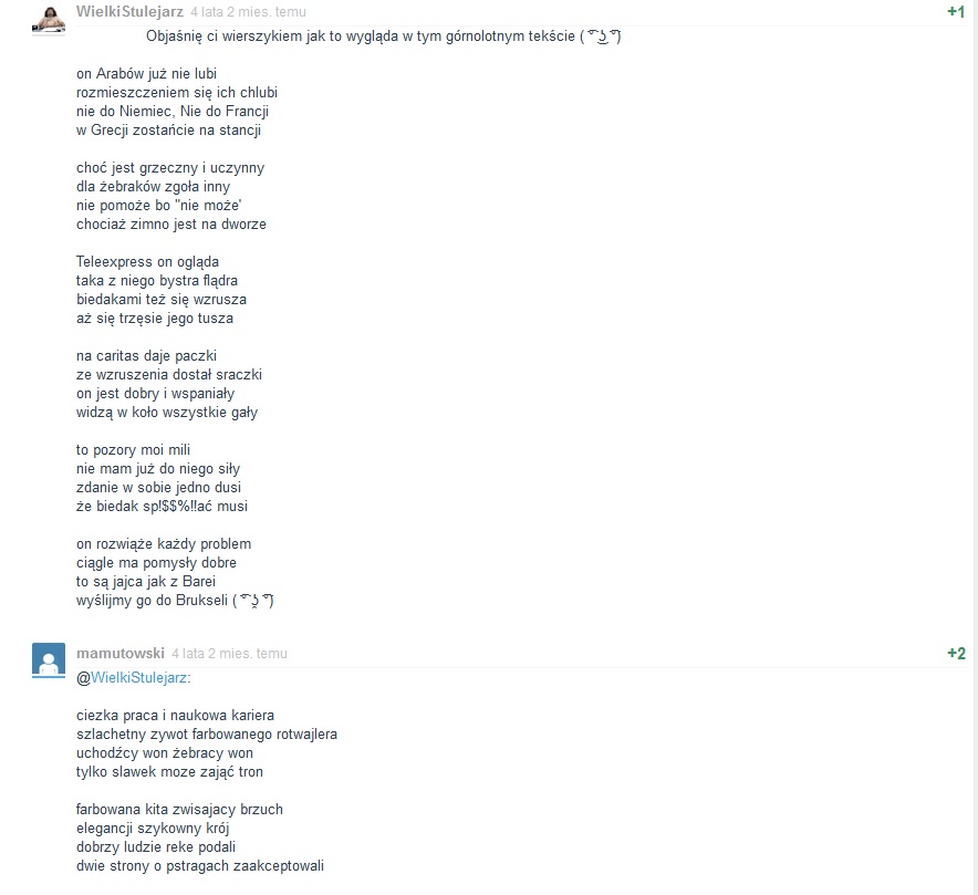 Włodzimierzu mi się wydaje że to jest jakaś głupia albo nawet Leżajska prowokacja która nie wiem co może mieć na celu więc moim zdaniem Przestań się dawać wciągać w jakieś gówniane przepychanki bo leżajski Pieróg nigdy w życiu nie stanął do merytorycznej dyskusji A teraz jak ma wypełniacz odbytu pod pachą to gra cymbał bohatera bo młodzieniec go wytkręcza