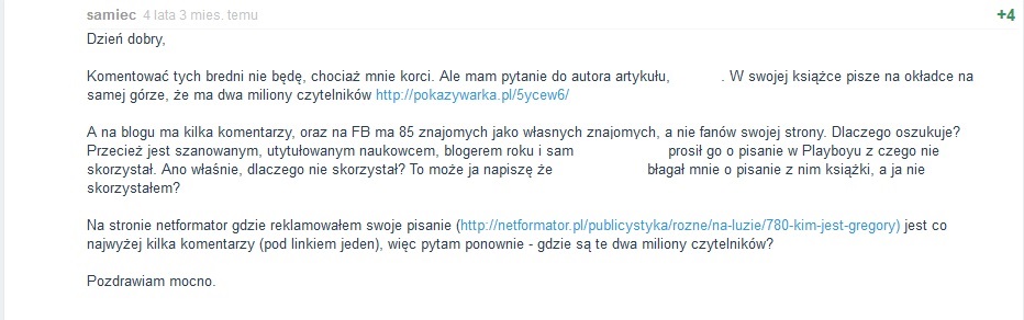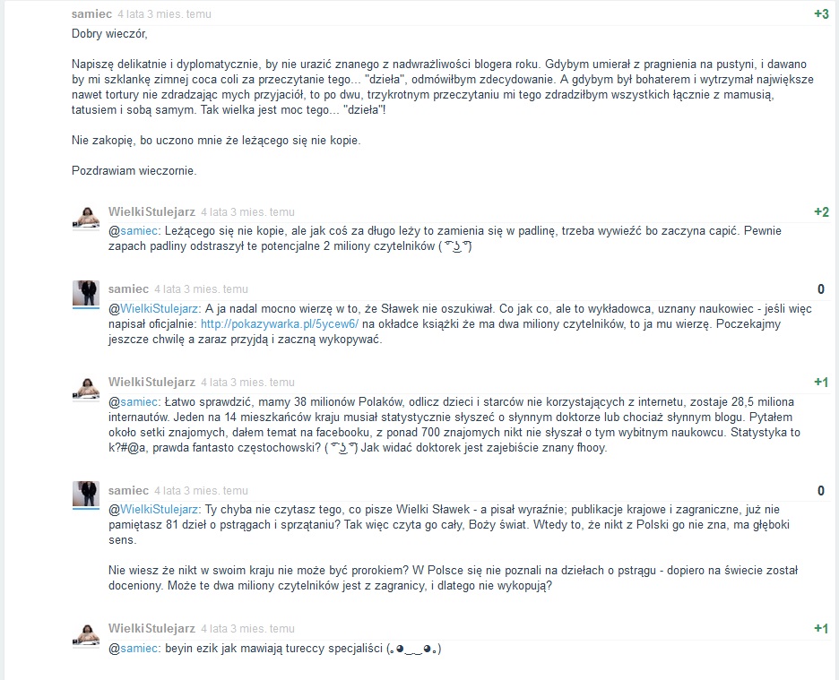 Zdarzyło się, że w pewnym momencie nawet Pan Kotoński miał pytanie do Blogera, na osobę, którego wcześniej nastawiał innych wykorzystując przestrzeń portalu Wykop dla swoich własnych, prywatnych gierek i wojenek.